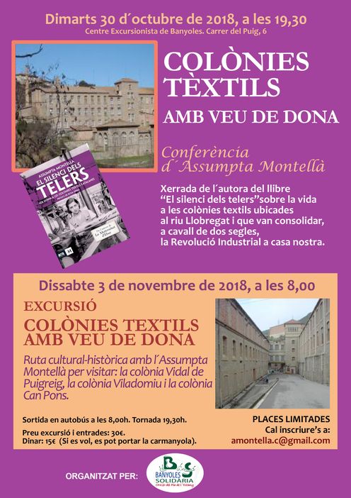 Octubre. Xerrada sobre les colònies tèxtils, per l’Assumpta Montellà.