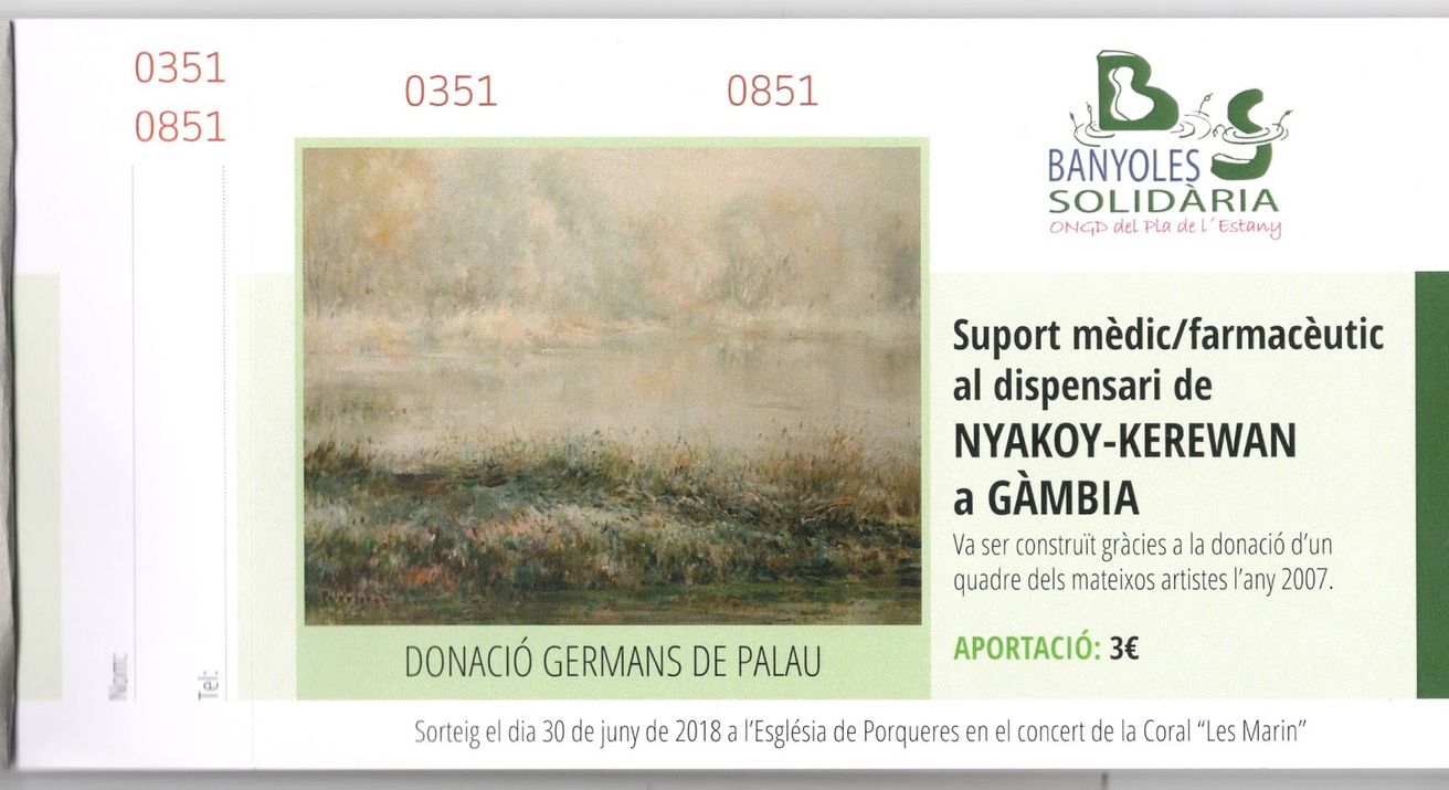 Juny. Butlleta de la rifa d’un quadre dels germans Palau Juncà per al dispensari de Kerewan, a Gàmbia.