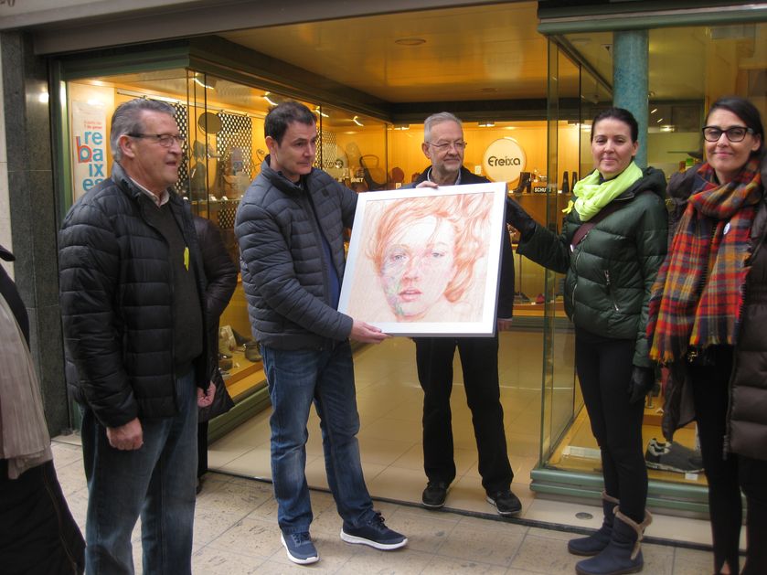 Desembre. Lliurament del quadre de les Twinsisters al guanyador de la rifa, a benefici de Banyoles Solidària.